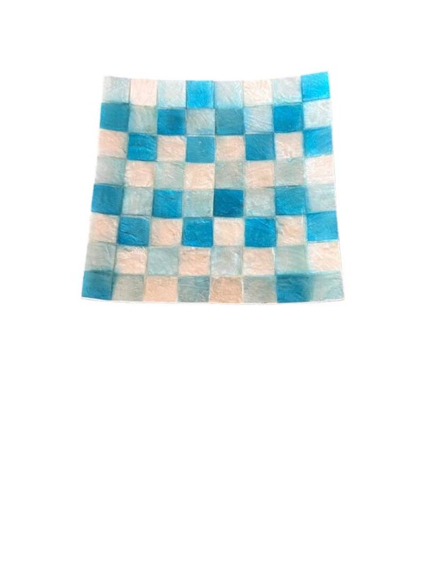 Capiz schaaltje met blauw mozaiek design.