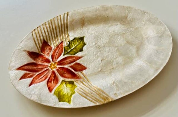 Capiz ovale kerstschaalje. Kan als display schaal gebruikt worden of om etenswaren erin te doen.