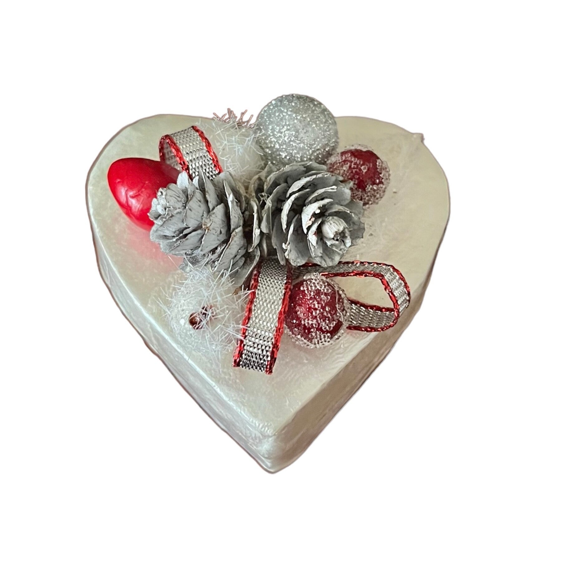 Hartvormige capiz doos met op de deksel kerstdecoratie. Mooi als cadeau doos voor een kerstcadeau voor iemand.